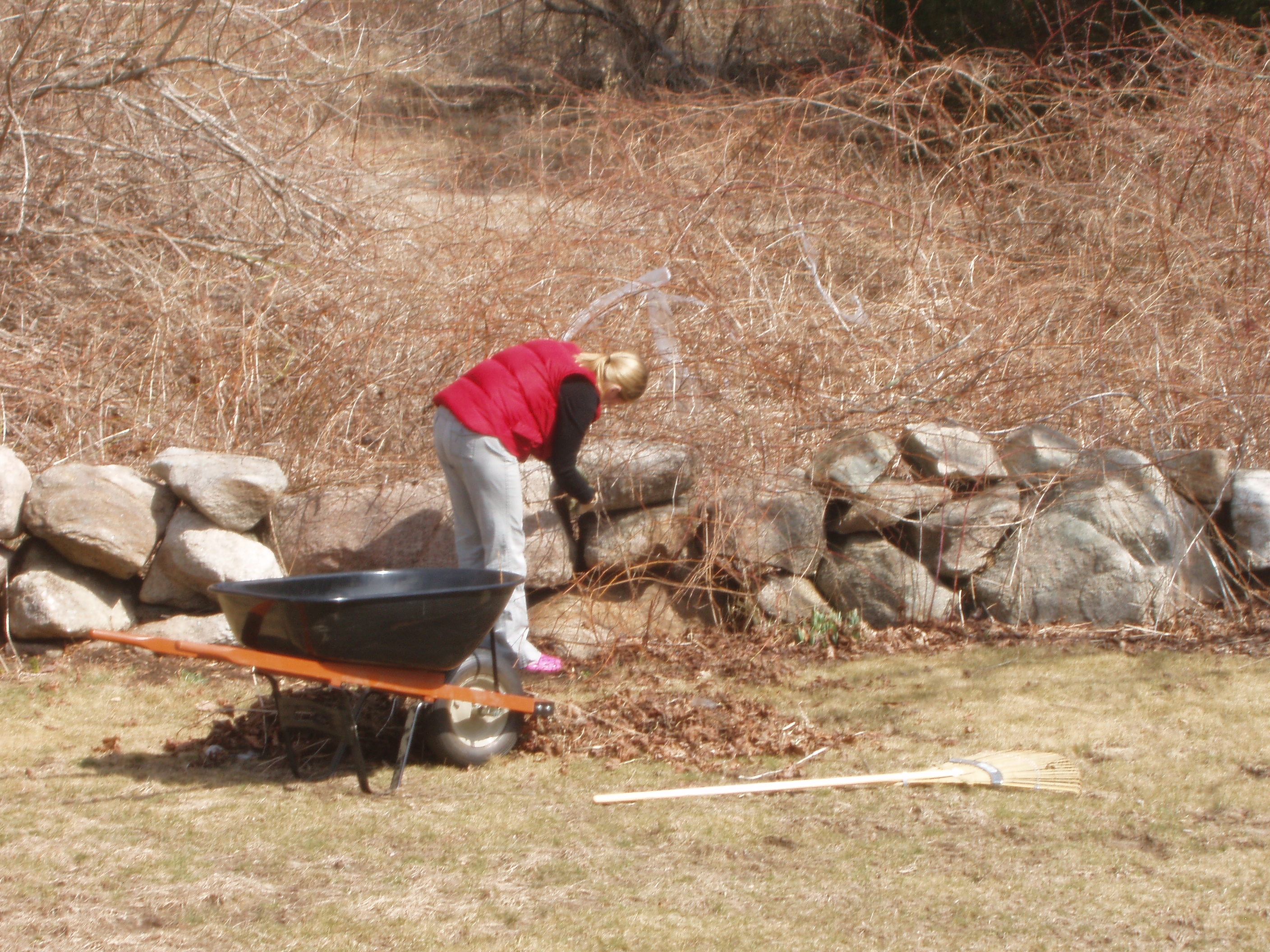 Decked out in Crocs and toting a brand new wheelbarrow, Cristin sets out to tend the grounds. Since then we have had more sightings of black bears in Mattapoisett than of Cristin doing yardwork. Luckily someone behind us has since bought that property and removed the briars because it turns out that stating that you hate them from the kitchen window is more effective at removing others around you than the briars themselves.