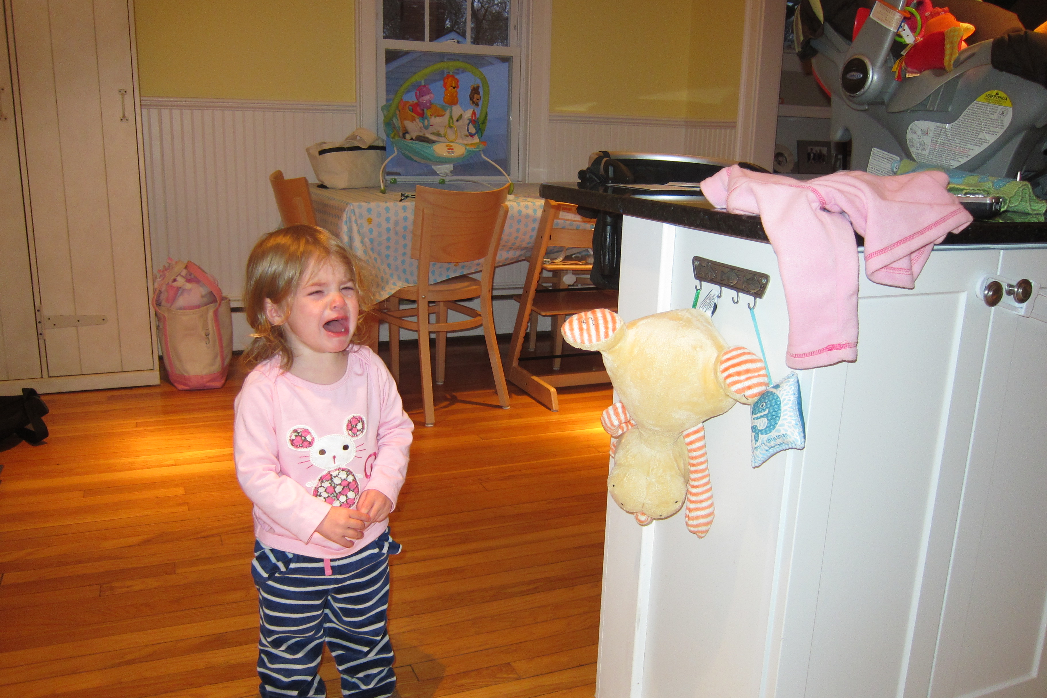 Saturday meant another swim lesson which was very fun. Phoebe even prompted additional rounds of both “wheels on the bus” and “wash the clothes” with her cries of “again”. This was fine with me because it reduced time with the noodles. Phoebe has had nothing but animosity for the noodles since day one. I don’t disagree with her. They are cheaply made and don’t actually provide enough buoyancy for even a 25 lb person. She has also become obsessed with jumping off the edge of the pool and we spend roughly half the lesson doing just that. We then went to the playground and had a nice lunch and later, when Cristin returned home from the Crap fair, she showed Phoebe some new gifts. She must have been endeared to these trinkets because when I tried to hang them up she went over the edge.