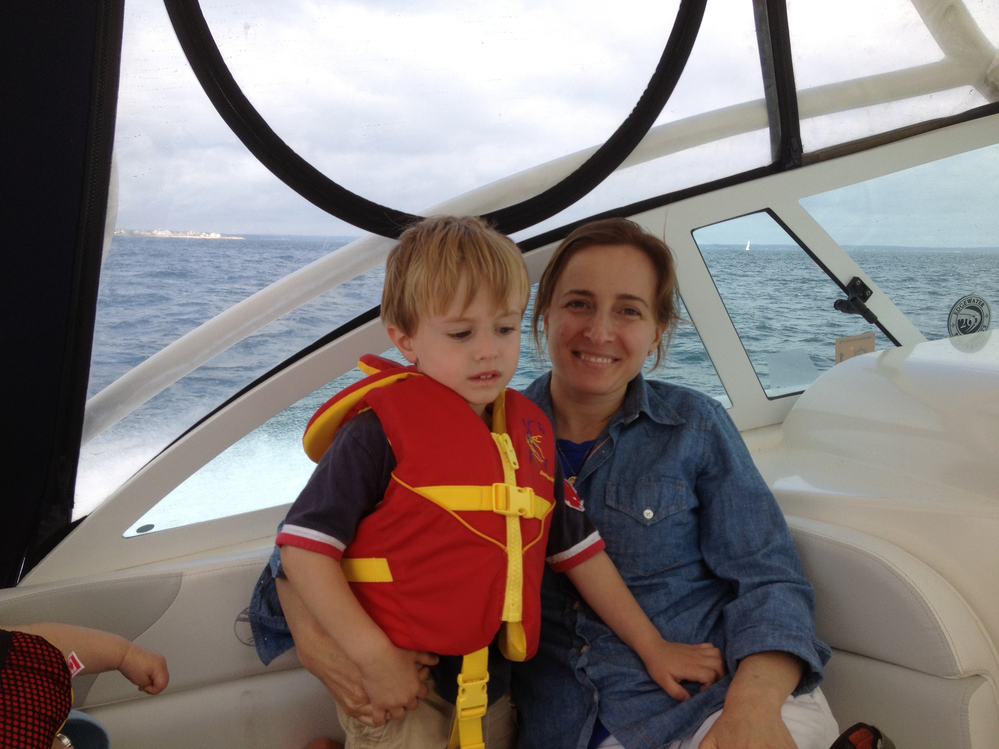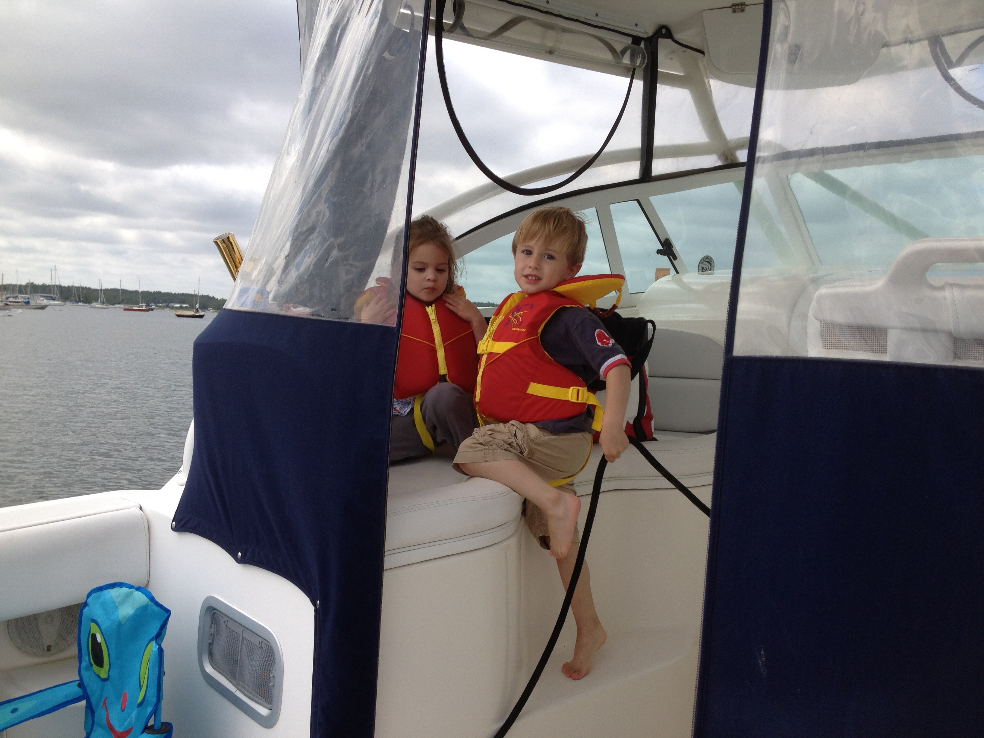 Lisa and Luke visited from the big city today. We had lunch on the boat and then took it over to Marion and picked up a mooring. Luke had a lot of questions about the motors and what various cables and tubes did. He was very curious about the fuel system and was a bit unsatisfied when I told him there was no way to view the connection between the fill cap and the tank. Lisa was concerned about me having to take care of him while she chatted with Cristin but essentially that involves answering series of questions. On the way over to Marion there were some short young waves and somehow in that rough motion Ellie conked out in Cristin’s arms. Cristin managed to transfer her to the cabin and she got in a reasonable snooze. We had got a rather late start and decided that Phoebe would be fine without a nap. This theory was ultimately rather unfounded.