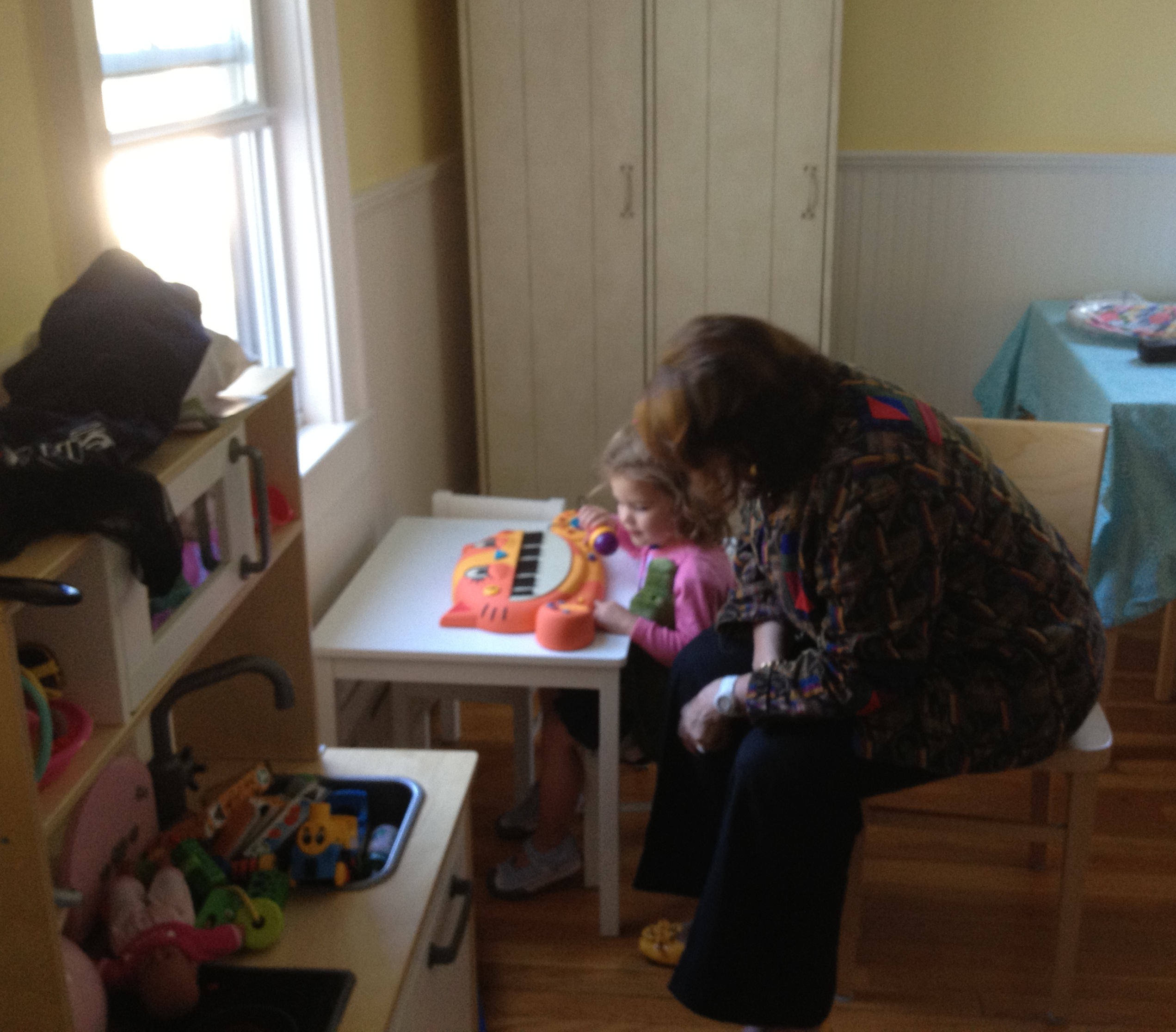 Above: Tootsie and Phoebe sing along to the over-modulated tunes put out by the cat piano. Below: After about 30 seconds of evaluation, Ellie reinstated Poppi on the not-a-stranger list for the 27th time. Perhaps bearing stuffed toys helps speed up the process.
