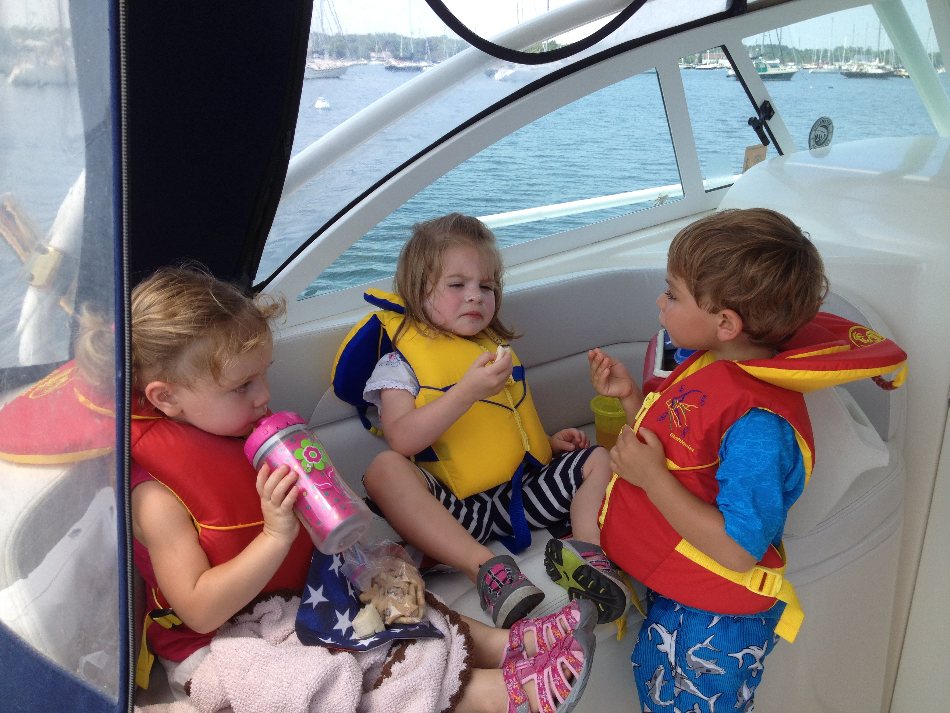 After a day of adjusting to the east coast lifestyle we had the Jerotz family up for a day in the boat. We moored in Marion harbor and the kids snacked continuously in the manner to which I am thoroughly accustomed. Jon drove home and the ladies snoozed on top of Jake who seemed afraid to move. It must have been a good experience because Jon is now thoroughly in boat buying mode.