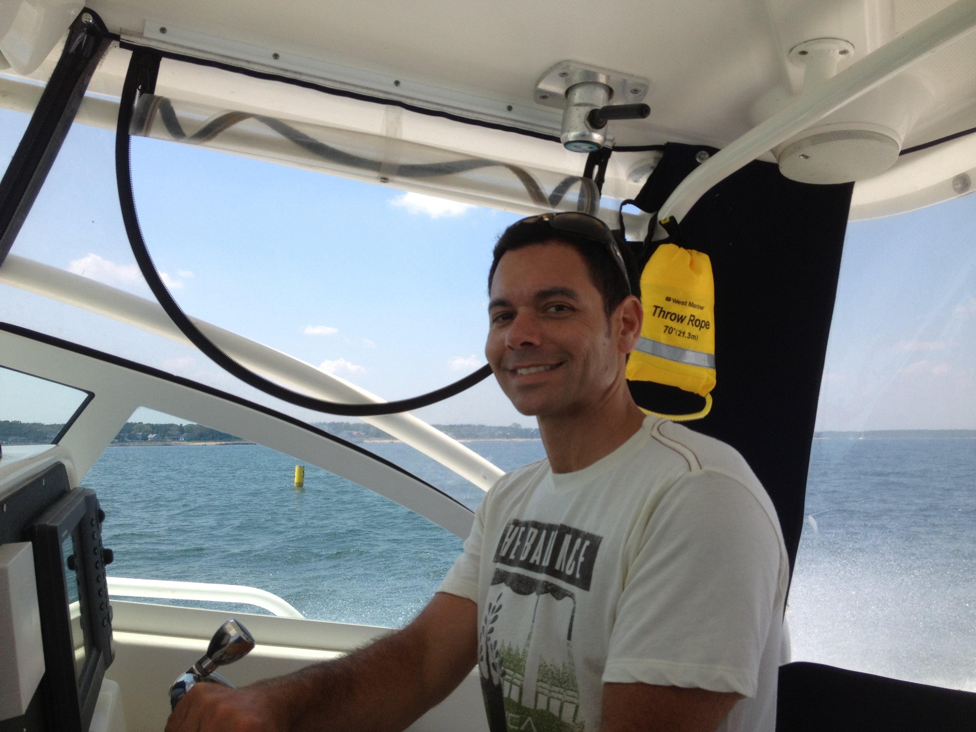 Above: Perfect, just-off-Cape-in-a-place-that-is-far-superior day. Below: Jon at the helm