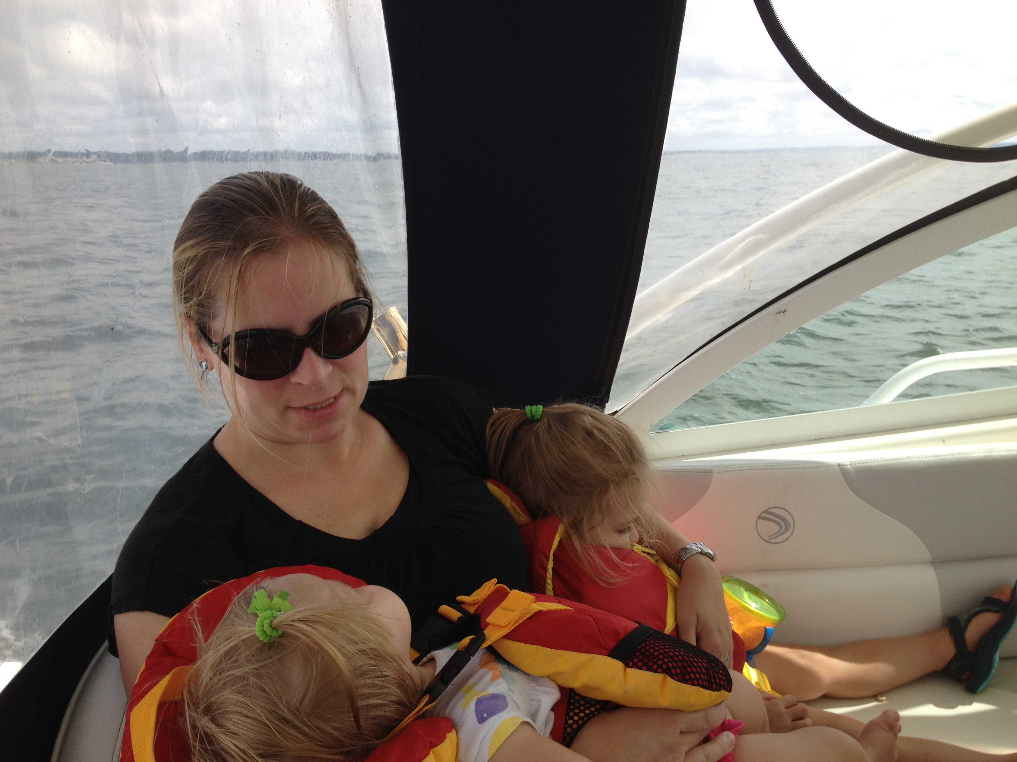 Above:  Ellie is so cute.  Of course she was looking for food.  Below:  This was Cristin’s position for the latter half of the season.  Phoebe spent the early part sitting in the captain’s chair with me but moved to the port side after a particularly hard trip back.