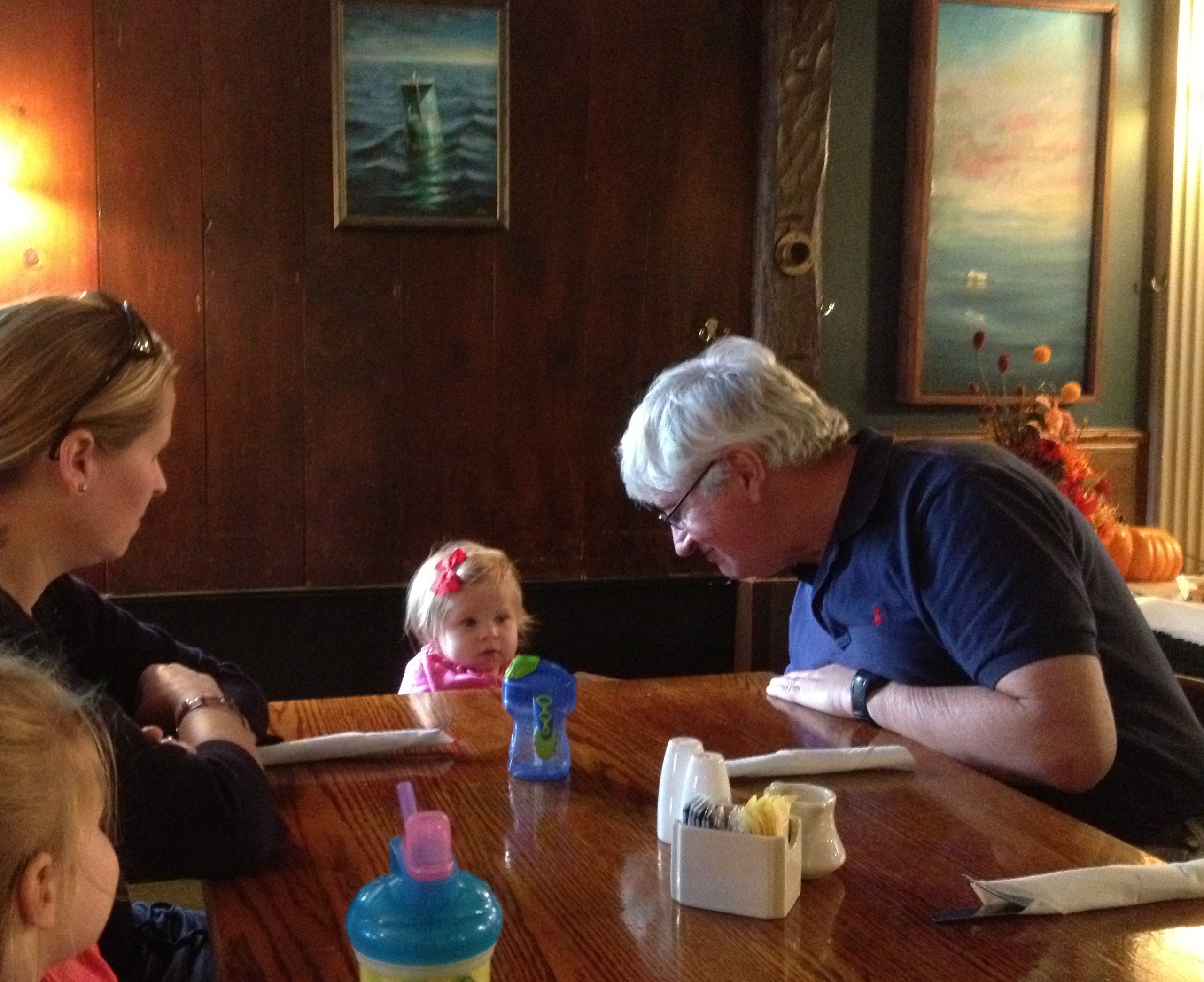 Above: Poppie entertains the peanut. Below: Happy Birthday to the Peanut. She is not so sure about being the center of attention.