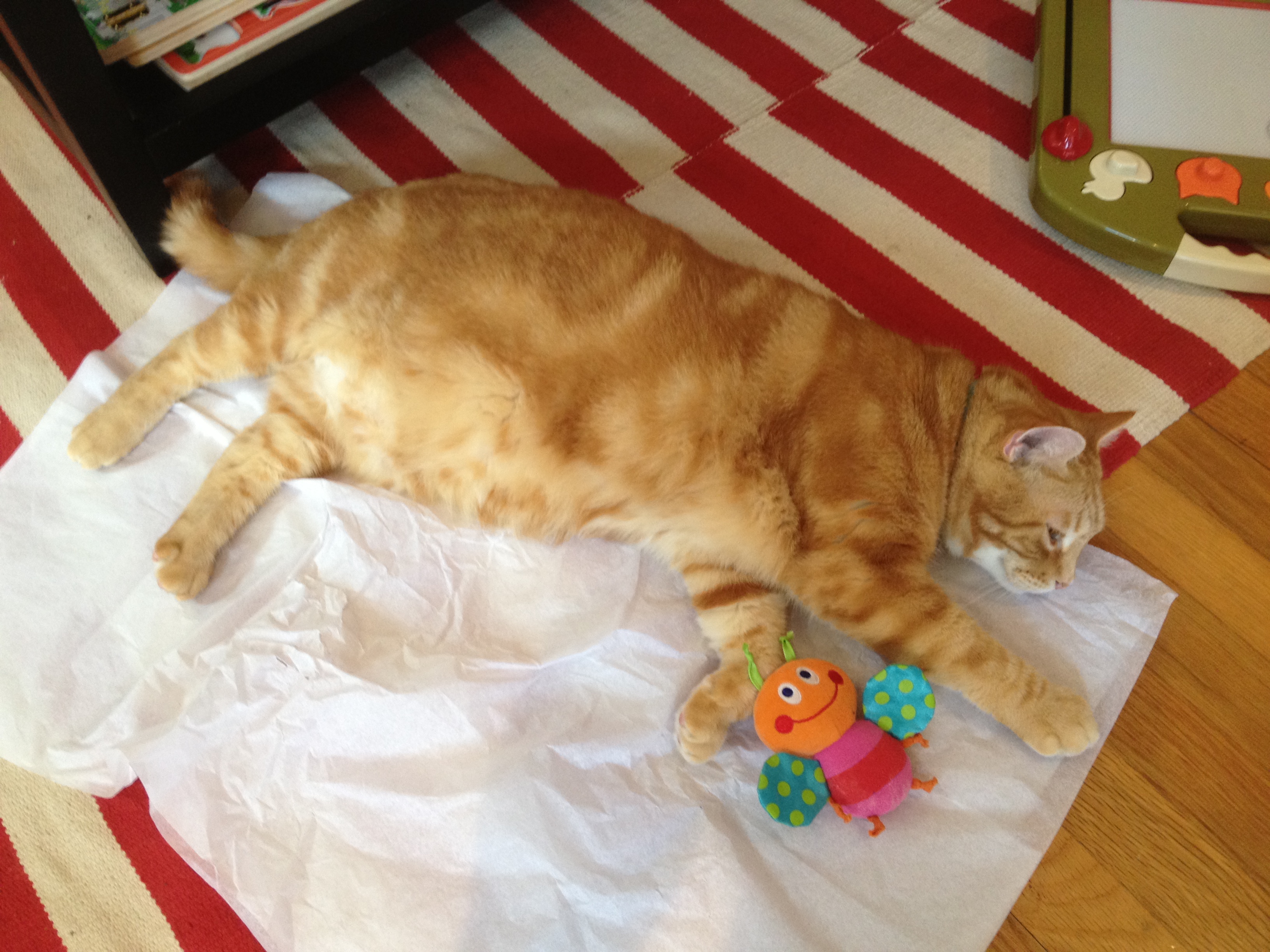 Above: Ellie shows off her balance skills while Gaga prepares to take another series of images that will forever live on her SD card. Below: Cristin decided to destroy any chance of the cousins napping on the way home. I am fairly certain we could have given them boxes of TNT and it wouldn’t faze dave. Below: I wish the kids were as exhausted as Rudy. He hung out with everybody the whole time and Ellie showed off her torture skills. She had a whole fistful of rudy at one point and was pulling him by his skin across the floor.