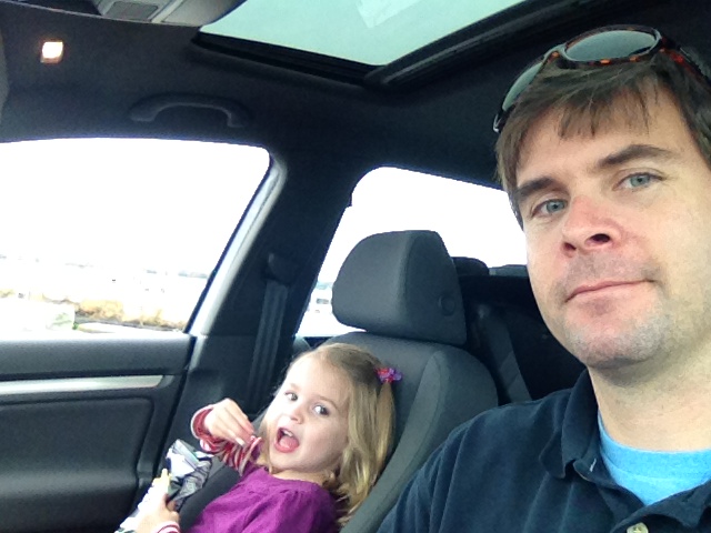 On tuesdays and thursdays I pickup Phoebe from school after teaching in the morning and I take her home. At some point we started stopping by a small park that was on the way home and somehow on a rainy day this morphed into eating popcorn on the wharf. I have to eat lunch anyway and eating with Phoebe is more fun than sitting in my office eating while I grade and trying to avoid getting my food all over the homework. I have discovered on these outings that Phoebe is a stickler about her popcorn. I tried to sneak in some Lay’s product the other week and she wanted nothing to do with it. It is Smart Food all the way. It is Smart of course because the people who market it are smart in that they have us convinced with their bio-digestible packaging and stark graphics that is somehow much healthier than any competing products. Anyway this is a special time for me and I get to hear odd tidbits about her morning at school which tend to make sense around two weeks later when some other piece of crucial information becomes available. I feel like Fox Mulder. Phoebe likes to DJ the music but she has so little patience that the satellite channels aren’t able to lock in before she is on to the next so the only noise I actually hear is the sound of ejecting CDs which serve as vehicles by which cheddar cheese can be transported into the interior of my radio.