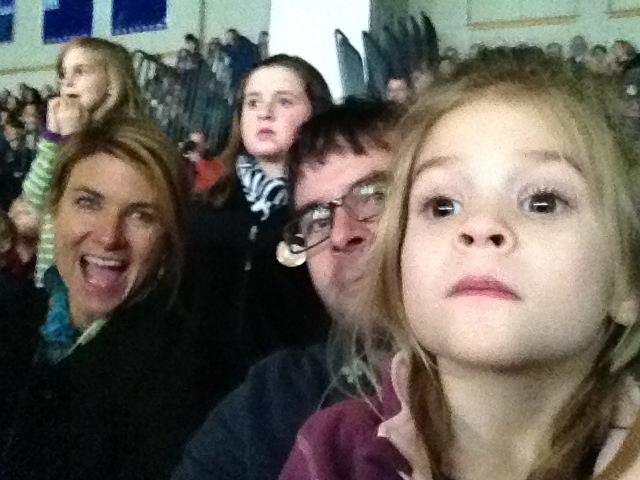 Phoebe and I stayed through New Years Eve. We attended the Ringling Bros. First Night circus at the high school with the Jerotz family. Despite arriving 30 minutes early, the line to enter wrapped essentially through the entire high school. I was suspicious that the gym could hold so many people but it turns out that when the record crowd of 57 people attended our basketball game against Harwich in January of 1990, there was apparently room for a few more. For me the circus was not quite at the level of last years event, partially because the crazy chair stacking guy was not there and partially because Phoebe did not have a diaper failure on Sarah’s lap as she did last year. After the circus the kids took naps and Jason came over and joined us for a very yummy hot dog dinner. We drove down to the kids fireworks which were great and Phoebe thoroughly enjoyed them from my shoulders. The evening events included naked hallway scootering (for the kids) followed by baths and a couch-based snackathon while viewing curious george. It has always been hard to live so far from my sister but it is even harder now as Phoebe and Jake are practically inseparable.