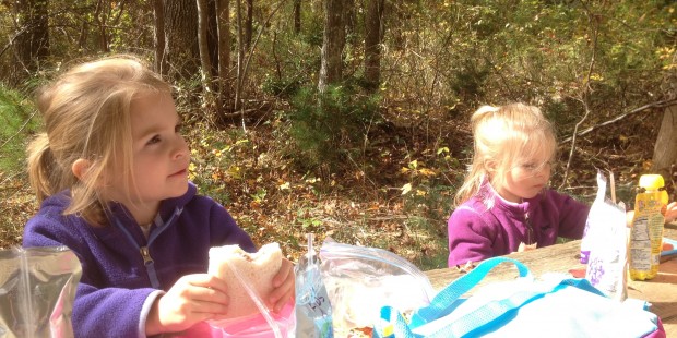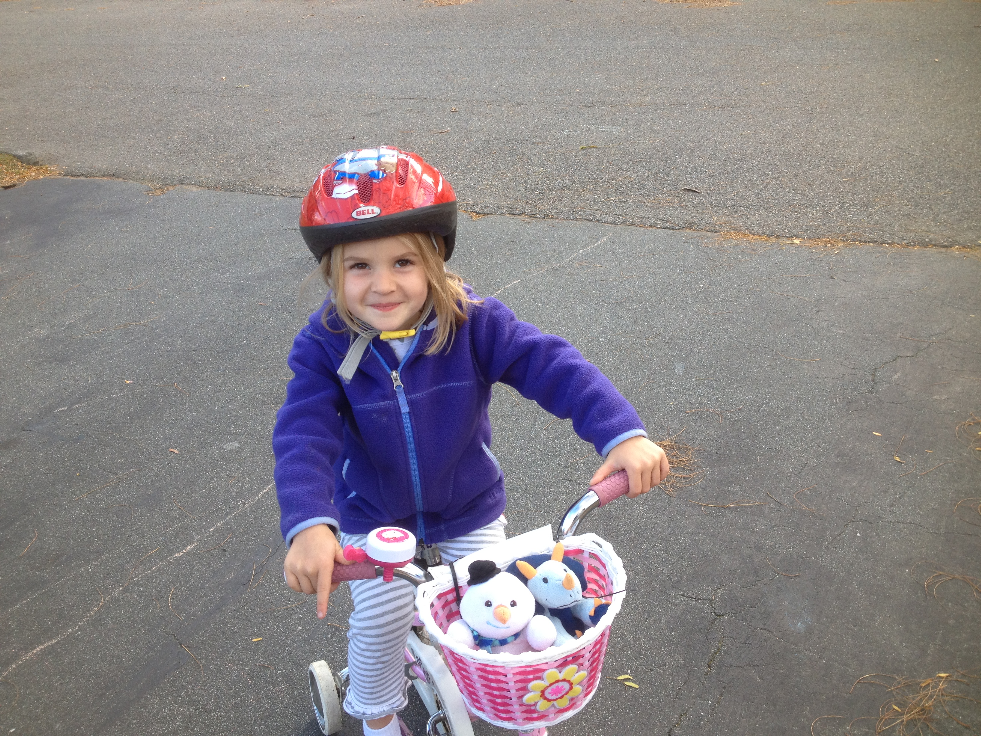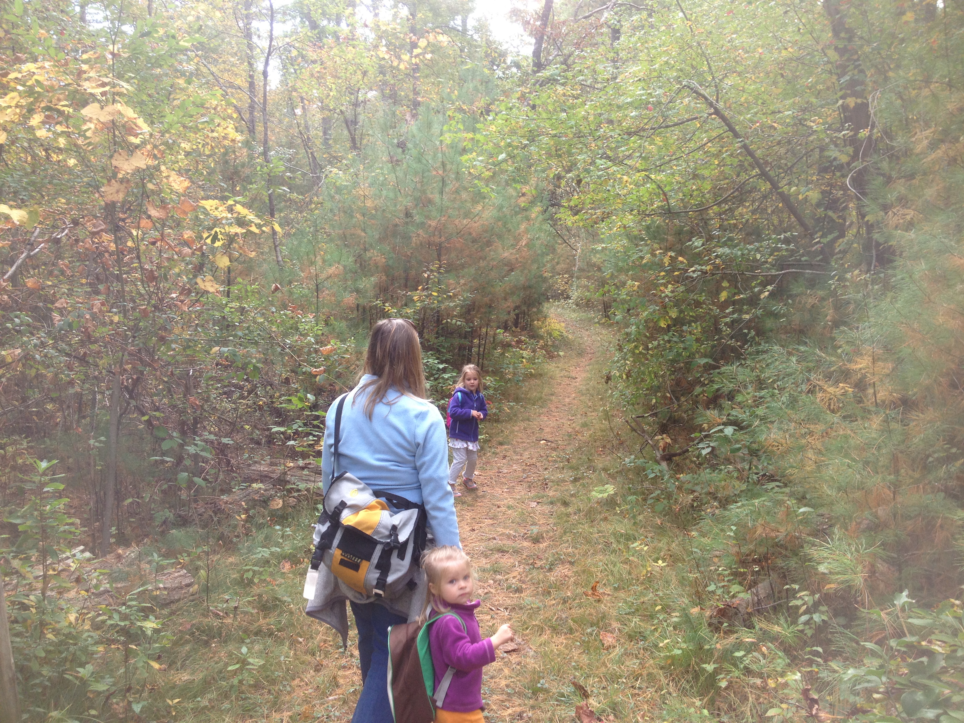 Sunday of Columbus day weekend we went for a walk in the woods in Marion in a nice reserve that has an observation deck overlooking the harbor. Phoebe took her role of navigator very seriously. Ellie was more interested in getting covered with burrs. After the walk we took the ladies to an open house where we were completely ignored by the agent for appropriate reasons. After returning home we took the vehicles out for a spin. I got serious with Ellie about riding the tricycle properly but she maintains no interest.