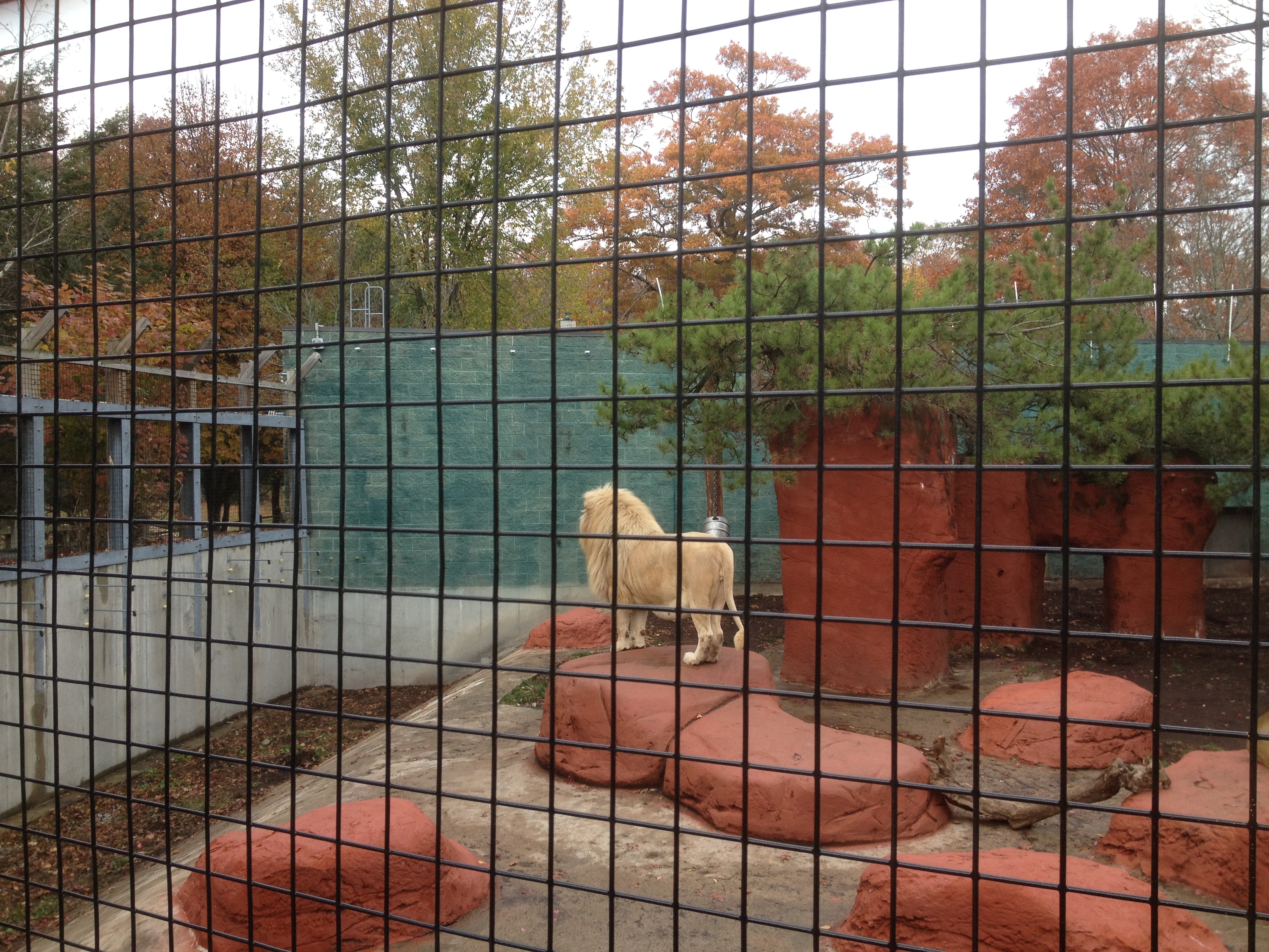 On veteran’s day weekend we took the ladies to the Capron Park Zoo.  It is a small zoo containing a number of dangerous animals including three 400 lb+ lions.   We had taken the girls here about 18 months before and not much has changed.  The male lion is impressive and he does a lot of talking and the sound emanates throughout the Park.   Probably the most entertaining bit was watching the kangaroos interact with the maintenance guy who was operating a leaf blower in their paddock.  All of them scrambled away with the exception of one brave kangaroo which kept harassing the guy to get back scratches and  have his fur blown out.  After the zoo we went to a dairy and the kids had “cone head” sundaes (yet another good idea stolen from Friendly’s).