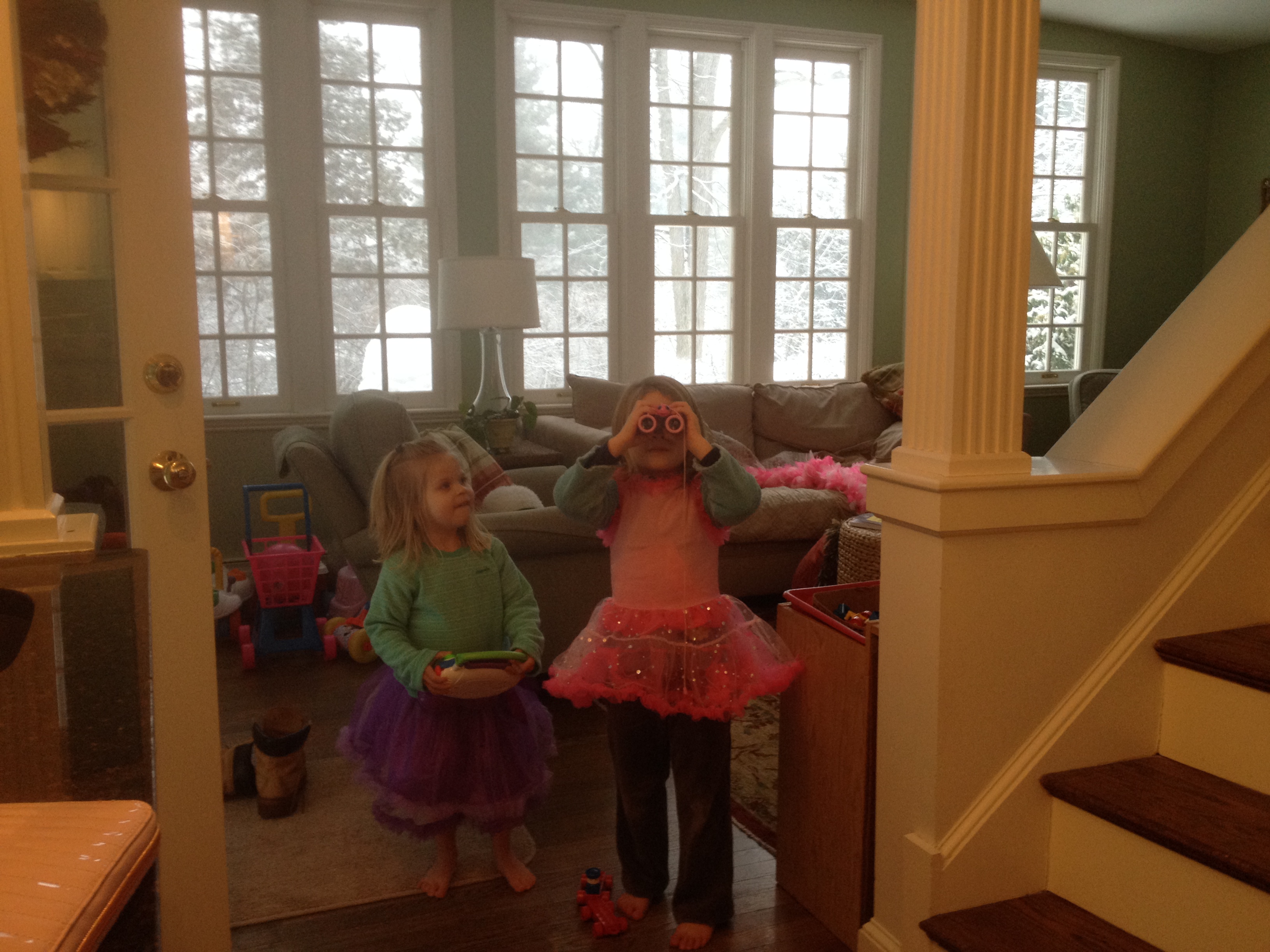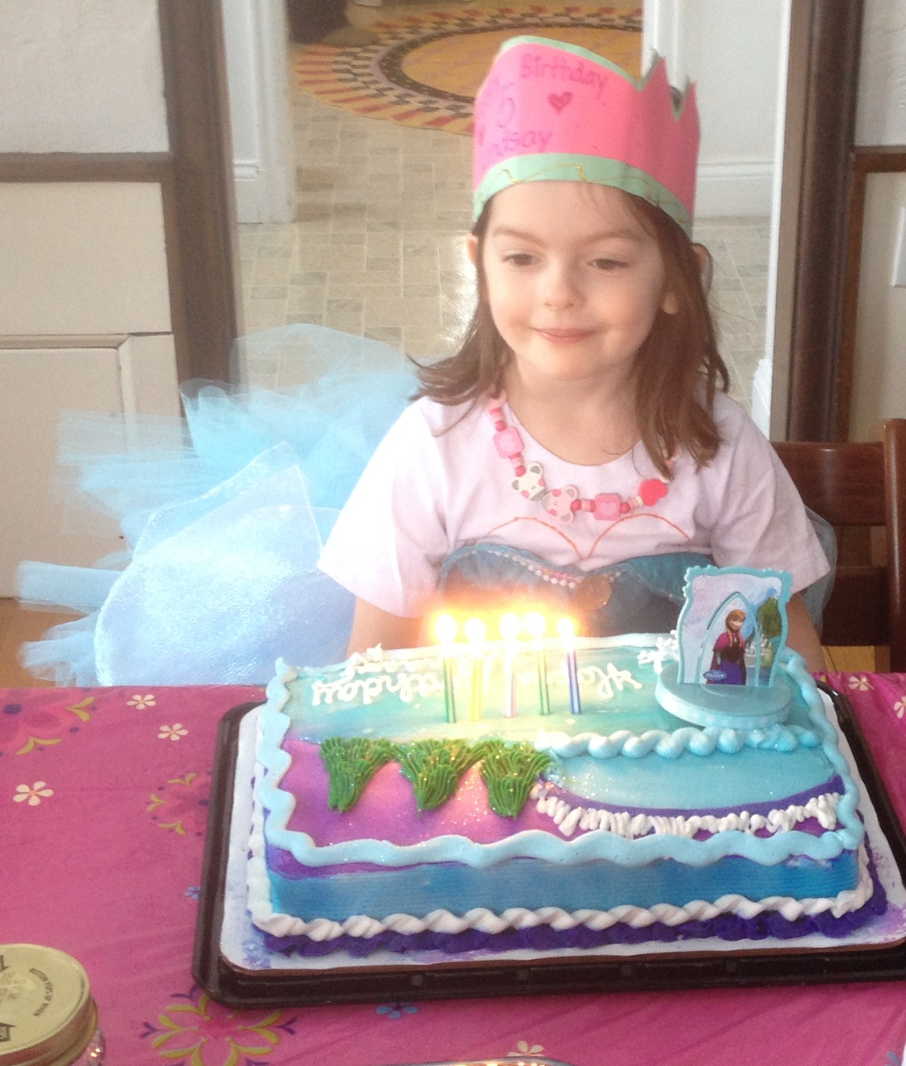 Two birthday parties in under 24 hours was plenty of activity for the ladies. We had swim on saturday morning and I am happy to report that Ellie continues to talk incessantly while swimming after a plastic cat. The teacher referred to her as “little miss independent” which would be a bit more accurate had she not had a large inflatable balloon strapped to her. He has a point though because she is fine on her own and that has made me a bit more lazy about pushing her. We gathered back at the house and then procrastinated for at least an hour so in the face of an impending storm and ended up behind a slow moving row of useless plows on the way to Tootsie and Poppy’s house. Plenty of time to catch up on listening to “shooting stars”. The common theme among the great musicians that Stern interviews is that they all remember their parents listening to certain classic records growing up. I don’t think katy perry is going to be discussed in that context twenty years from now. The girls really like going to the grandparents houses and the routine in Wellesley is to run upstairs and get dressed up for a kind of show. I don’t know what kind of show because I never get a satisfactory answer on that question. We had to accelerate this process because Maura had been waiting for help frosting the cake for Grady’s birthday party. It wasn’t really his birthday, we were apparently celebrating that he is now the longest living Howley-owned standard poodle. This went a bit better than I had imagined, partially because Phoebe had requested we bring the cake frosting knives from home which turned out to be some kitschy cheese spread knives that Cristin bought when we had more time on our hands. Sometime during the process Ellie sneezed directly on the cake from point blank range but Maura kept tabs on what section was compromised and ensured me that I got a piece from the safe zone. This trip was their second sleepover and I think it took 90 minutes to get them to bed. Cristin took the first few trips and I went up around 9:30 and found the room in complete disarray. Ellie had knocked the bars off the side of her crib and there was a large pile of books on the floor which represented the wholesale clearing of one of the shelves. They had also been throwing stuffed animals at each other. It took me a while to get the safety screens back in so we sat and watched the plow come and go and then we discussed electricity for a while and I read them more books and that seemed to do the trick. Those who stayed up chose to watch Captain Philips which was a great movie. We are 2/2 in our saturday night movie viewings at the Howley’s, the other movie being “the way way back” which was surprisingly funny. Sunday we went to the Boffa’s for the ladies 5th birthday. The theme was “frozen” and the place was pretty decked out. I was most impressed however by the bacon. Dave had cooked a whole bunch of bacon and it was perfectly done, every single piece. When queried about his technique, he really hid his cards. I still don’t know how he did it. The kids carb loaded pancakes and cake and partied for a while and both were asleep by the time we hit Rt 24.