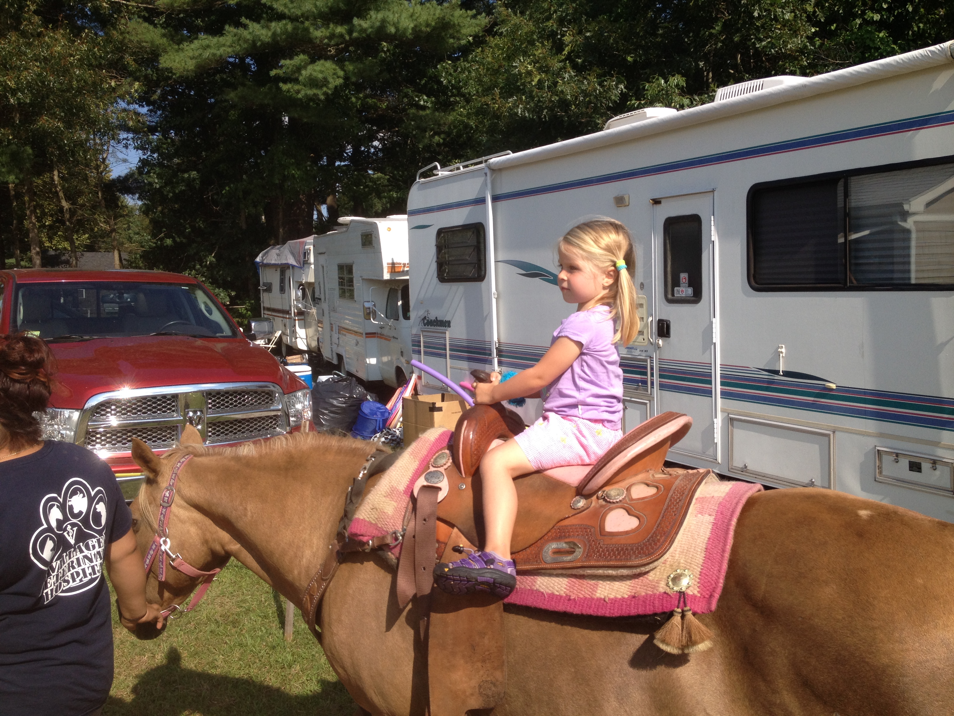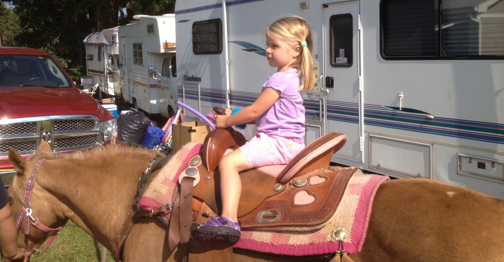 After a slow start to the day we headed out to the boat where we found ourselves thoroughly unmotivated to go anywhere. We grabbed a derelict mooring on the calm side of the harbor and inflated the dinghy to go for a cruise. We went up the Mattapoisett River where there were dense schools of pogies with 100s of fins slicing the water and ospreys enjoying the easy catch. After waiting out a small rainstorm on the boat we hurried back to catch the last day of the Rochester Country Fair. Initially the ladies were a bit disappointed that the main events were tractor pulls and lumberjack competitions and that the strawberry ice cream had actual bits of strawberry in it but things turned around when we found the more kid-friendly area that had pony (technically horse) rides, glitter tattoos, face painting, and a large box filled with corn seeds to play in. A solid summer Sunday.
