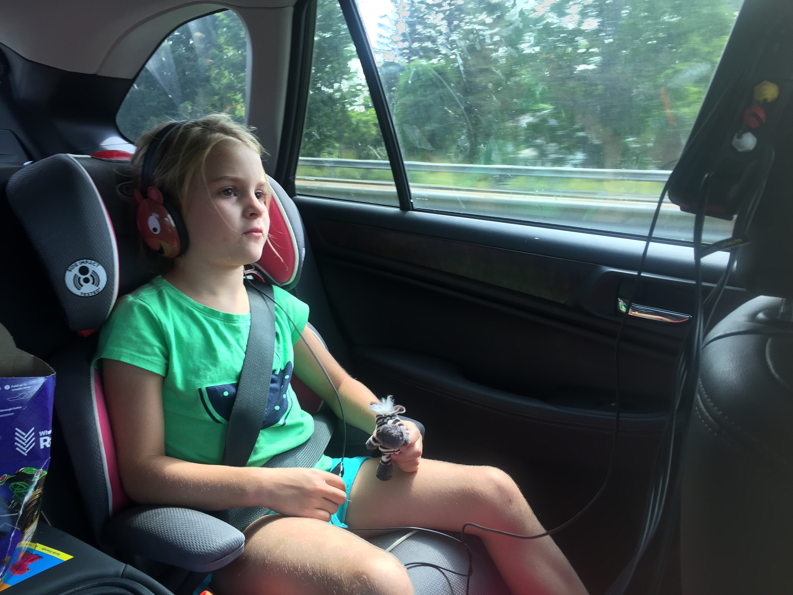 I was determined to make a Cowles style “go-go-go” weekend so I had googled family activities around Canandaigua and it turns out there is plenty to do.  I reserved two spots at the Bristol Aerial Park for Saturday morning even though I was quietly skeptical about how much the kids would enjoy it.  It is at the top of Bristol mountain which is accessible by unpaved road.   After we arrived we headed to the equipment area and I could tell Phoebe was concerned about the harness.   Ellie is not put off by much and we headed out to the two kids courses which the website had promised did not exceed 5 feet above ground (the adult courses being closer to 100 feet).  I felt that at that height I could still help them with my gangly arms but it turned out that 5 feet was a pretty lowball estimate.  The course consists of a series of wiggly walkways strung between trees and a wire above it to break your fall via the harness.  The girls made it about 50% of the way through with all the coaxing and coddling I could provide and then Phoebe lost it.  This required a staff member to go up and reverse her path and swap her with everybody else moving along the course.   He got them off and moved them to a section where they could run and hang from their harnesses which entertained them for a while and then we headed back to Canandaigua.