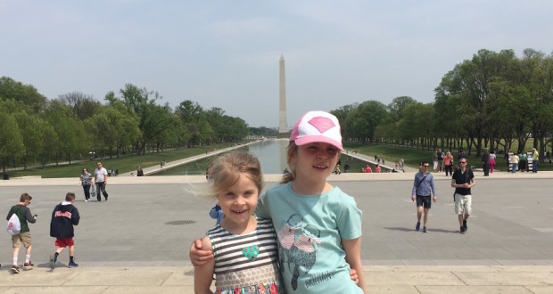 We have managed to have work emergencies cancel 50% of our vacations so we decided to preplan a getaway for the April school break so it would at least be on the books. A quick look at airline tickets put Florida out of the running. We then decided to find the warmest place within reach of the automobile and came up with Washington, D.C. We were pretty fortunate on the break to first see Aunt Sarah run the Boston Marathon and then have a fun dinner with her and Uncle Jon. We ended up leaving Wednesday in the morning around 9 and did not arrive at the hotel until 12 hours later. The girls took in some portable TV time and I stared at google maps routing us around various traffic jams. Rt 95 in the northeast corridor is probably consistently the worst long stretch of highway in the U.S. so we weren’t completely surprised by the near factor of two it required over a kids-free no traffic time.