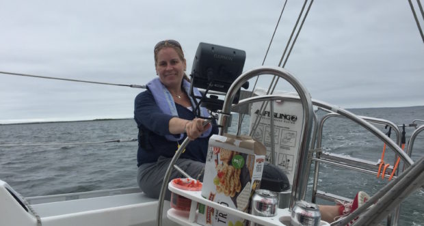 Our first family sailing trip on the J/28 met all expectations. The day was overcast with a shifty north wind in the low teens. Cristin drove most of the time and we talked about true and apparent wind and tacking and such. The boat behaves very well with full sail (135 Jib) in low teens and I suspect we won’t need to reduce sail until we reach mid to upper teens.
