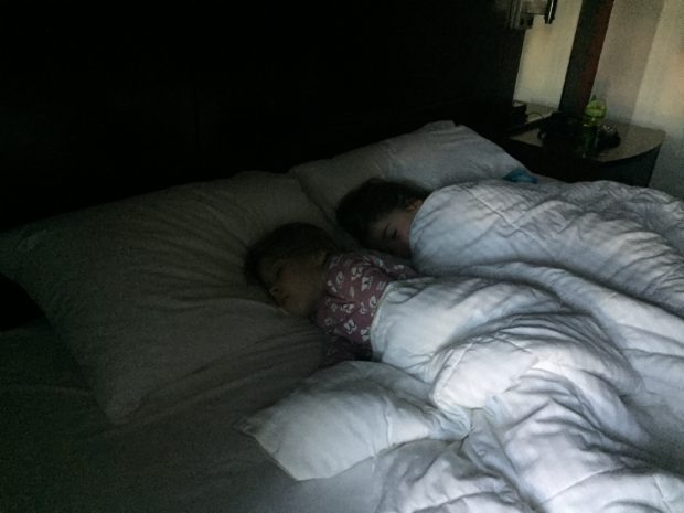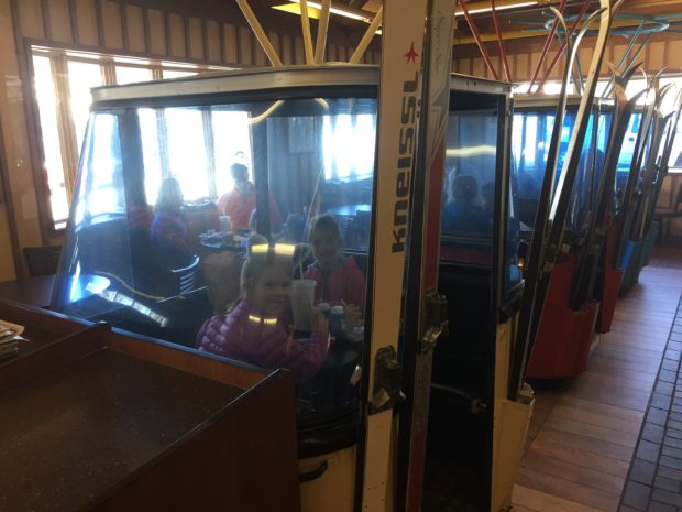 If she is happy it is very hard to get a read on her level of fatigue and keeping up with an older sister often means she is often pushed pretty hard. Monday was President’s day and we hadn’t planned much for the morning since Cristin had “an hour” of work to do. I brought in my special Cristin time estimate multiplier (5x) and quickly determined I had to entertain them through at least early afternoon. We spent the morning in the hotel lobby doing “coding” and then went out to lunch at McDs. The North Conway McDonalds has retired gondolas you can sit in for lunch and I had faint memories of being there three decades prior. After that we went to EMS to look at gear, awaiting Cristin’s text message that her work was finished. We picked her up and the four of us went to the Kahuna Laguna, the indoor waterpark at the Red Jacket.